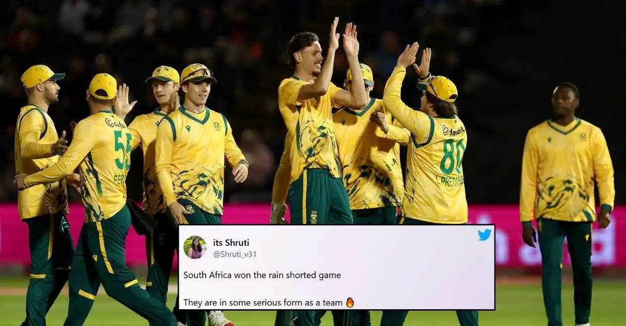South -Africa keeps the nerve in wet conditions to take the first #Engvsa T20I 🙌. pic.twitter.com/Hzfaqcjnds